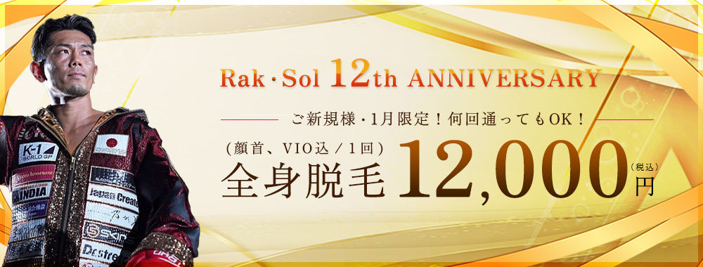 ラクソル12周年キャンペーン!メンズ全身脱毛が期間限定!!何回通っても1回12,000円!!